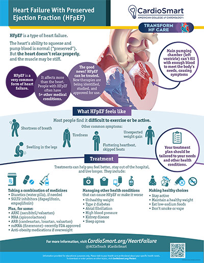HFpEF is a very common form of heart failure. The heart's ability to squeeze and pump blood is normal ("preserved"). But the heart doesn't relax properly, and the muscle may be stiff. Learn what it feels like and how it's treated.