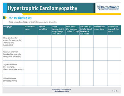 Use this worksheet to track the medications you're taking to manage hypertrophic cardiomyopathy (HCM). Keep an updated copy with you and bring it to each health visit.