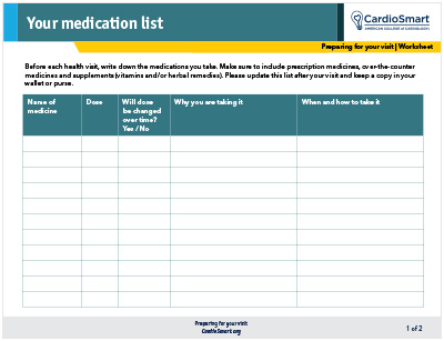 Keep an updated list of your medications. Bring it with you to each health visit. Download the file to print out the worksheet.